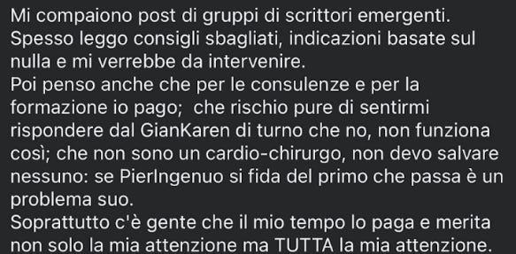 E questo peso si è concretizzato qualche giorno fa davanti al post di una editrice che mi ha provocato reazioni contrapposte.